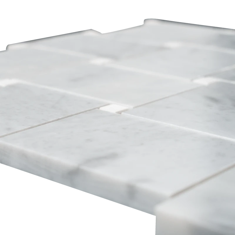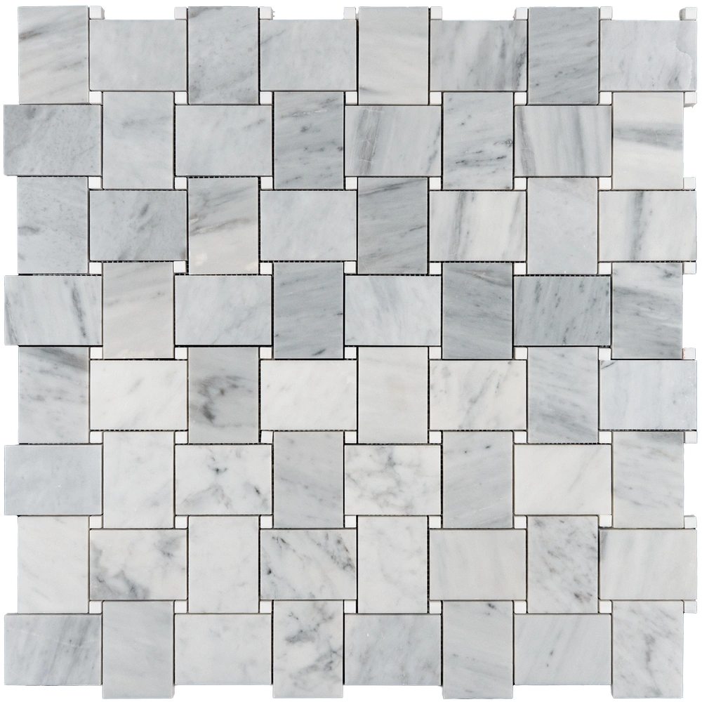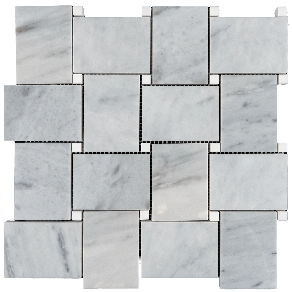Large Basket Weave Carrara & Dolomite Marble Mosaic – 12″ x 12″ Polished