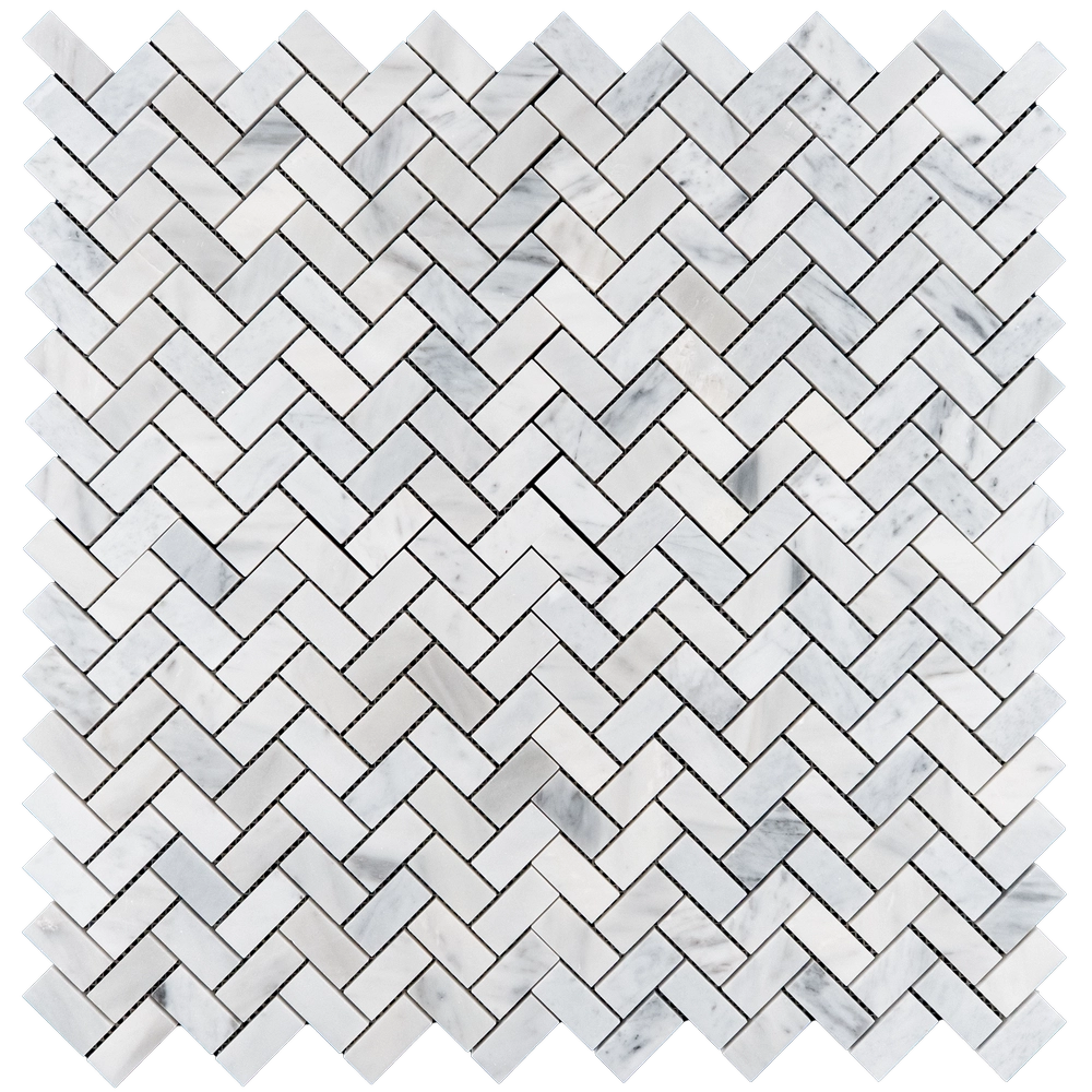 CARRARA White Herringbone 1″x2″ Polished Mosaic Tile