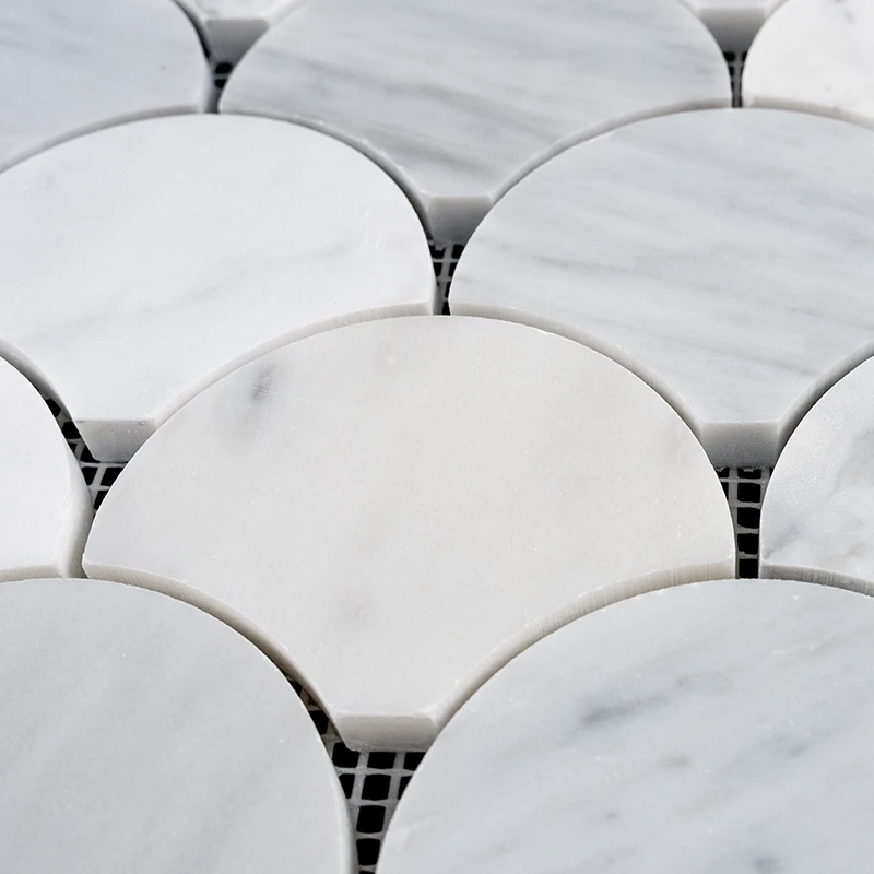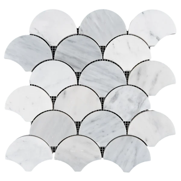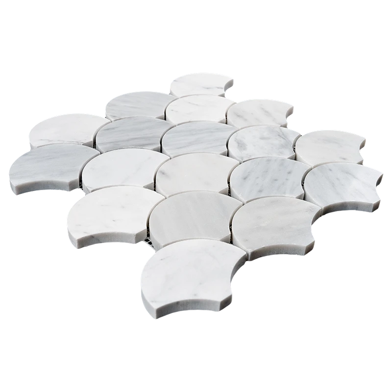 Fish Scale Carrara White Marble Mosaic Tile – Polished Finish
