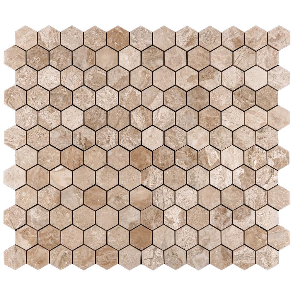 Royal Beige 2″ Honeycomb Polished Marble Mosaic Tile – Timeless Sophistication
