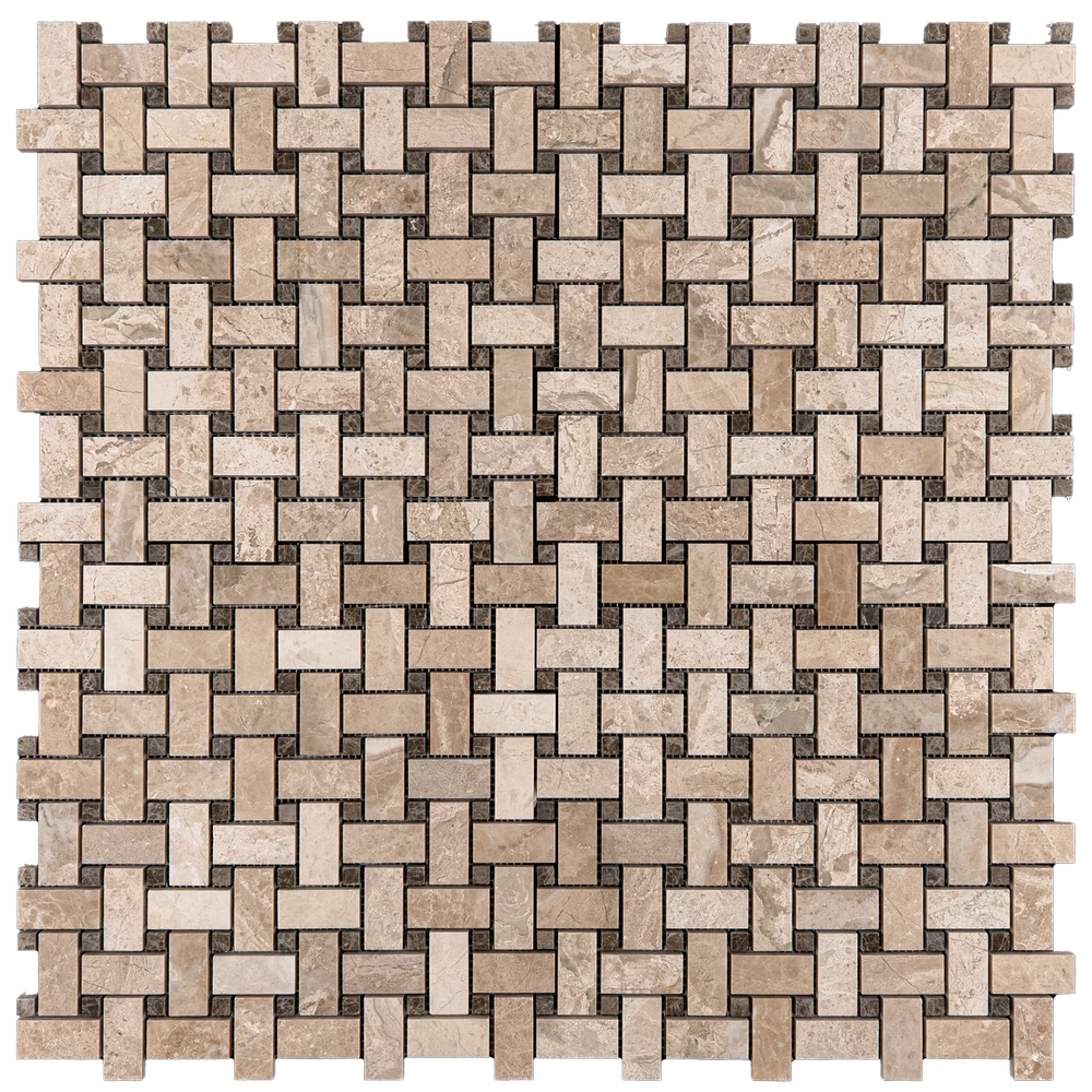 Basket Weave Royal Beige & Emperador Marble Mosaic Tile – 12″ x 12″ Polished