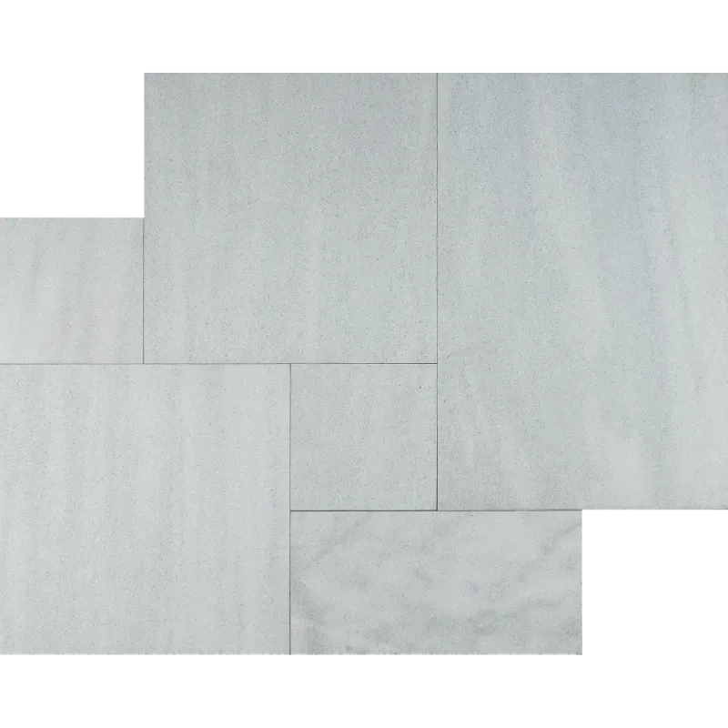 Arranged in a classic French Pattern, each set combines multiple pre-cut sizes to create a dynamic, flowing visual effect. Perfect for pool decks, contemporary patios, and elegant driveways, Florida Blue marble adds a refined, timeless touch to any exterior space.