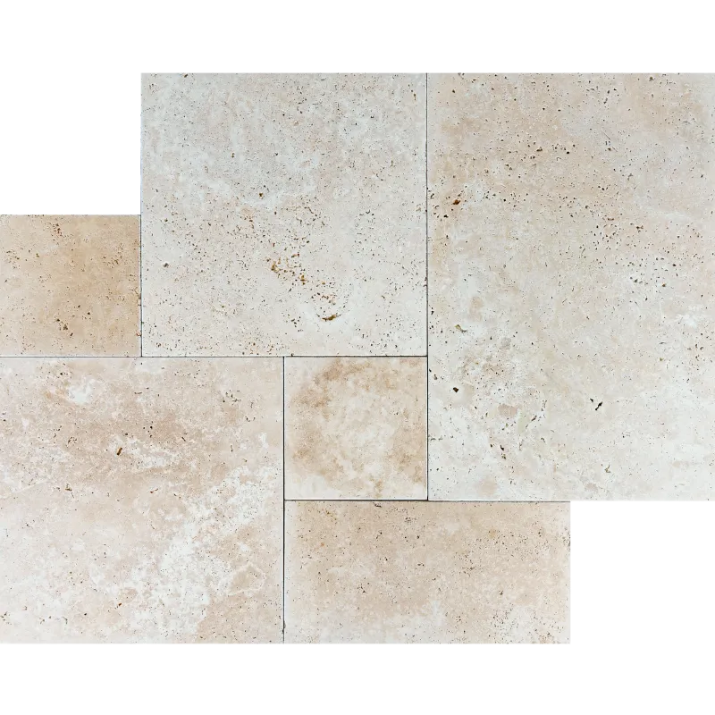 Ivory Tumbled Travertine Pavers – Classic French Pattern
